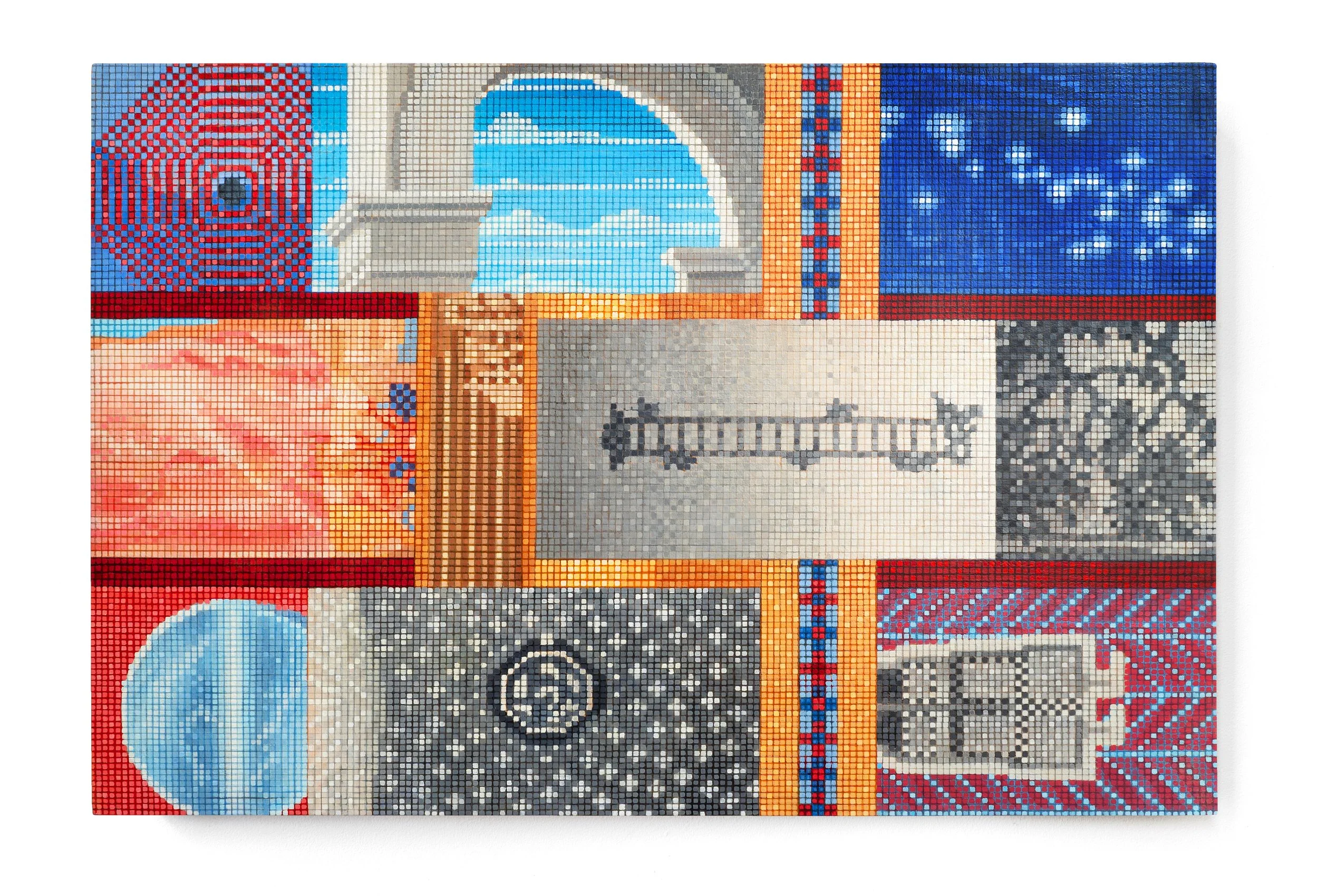 Oil paint, acrylic gouache, colored pencil, and India ink on panel